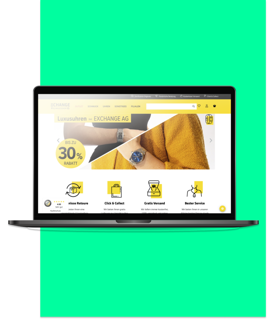 Dieser Aufgabe haben wir uns natürlich mit vollem Einsatz gewidmet – und die Marke nach Goldstandard weiterentwickelt. Heißt konkret: Für Exchange AG gab es eine neue Positionierung, ein neues Corporate Design und eine integrierte Kanalstrategie, um so gezielt die Botschaften in die relevanten Zielgruppen zu streuen. Und das alles mit dem Ziel, den Traffic im Onlineshop und den POS in den analogen Shops zu erhöhen.